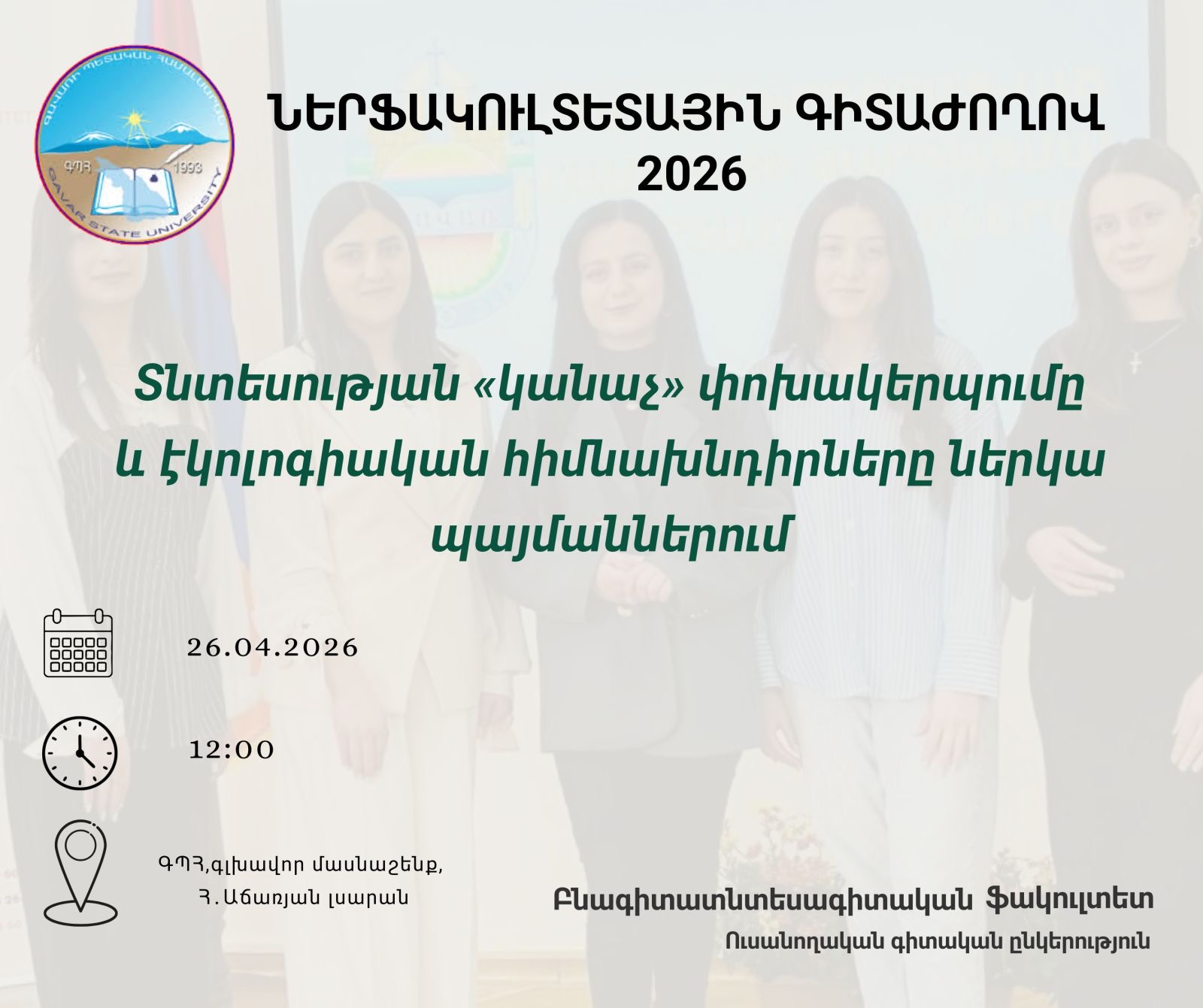 Գիտաժողովի թեման է՝ «Տնտեսության «կանաչ» փոխակերպումը և էկոլոգիական հիմնախնդիրները արդի պայմաններում»։